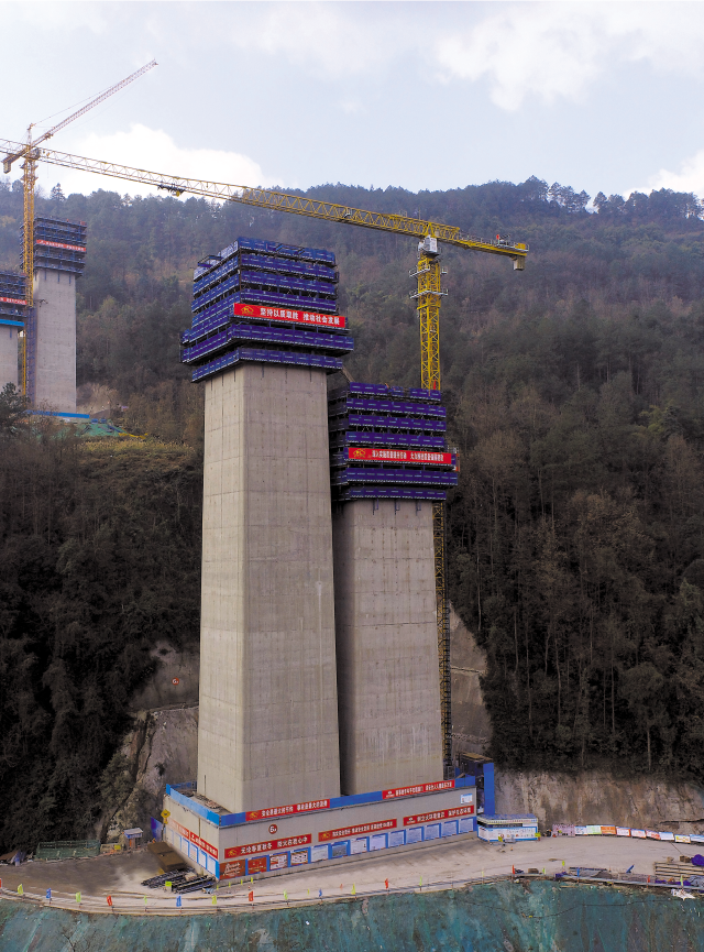 公司承建的施工任務(wù)為渝湘復(fù)線高速公路(巴彭段)第3標(biāo)1分部1工區(qū),總包單位為中電建路橋工程有限公司,承建單位為中國(guó)水利水電第七工程局。公司承建的施工任務(wù)全長(zhǎng)9.43km,為雙向6車(chē)道高速公路,路基寬度34.5m,設(shè)計(jì)時(shí)速120KM/小時(shí),工程概算建安約14億。其中,龍川江特大橋工程,橋長(zhǎng)1335m,主橋?yàn)?5m+3×160m+85m連續(xù)鋼構(gòu),主墩高179.2m,造價(jià)5.22億;河圖樞紐互通工程,造價(jià)3.7億。